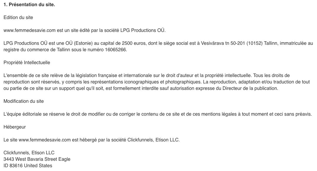 Le site est mis à jour régulièrement par LPG Productions OÜ . De la même façon, les mentions légales peuvent être modifiées à tout moment : elles s’imposent néanmoins à l’utilisateur qui est invité à s’y référer le plus souvent possible afin d’en prendre connaissance.